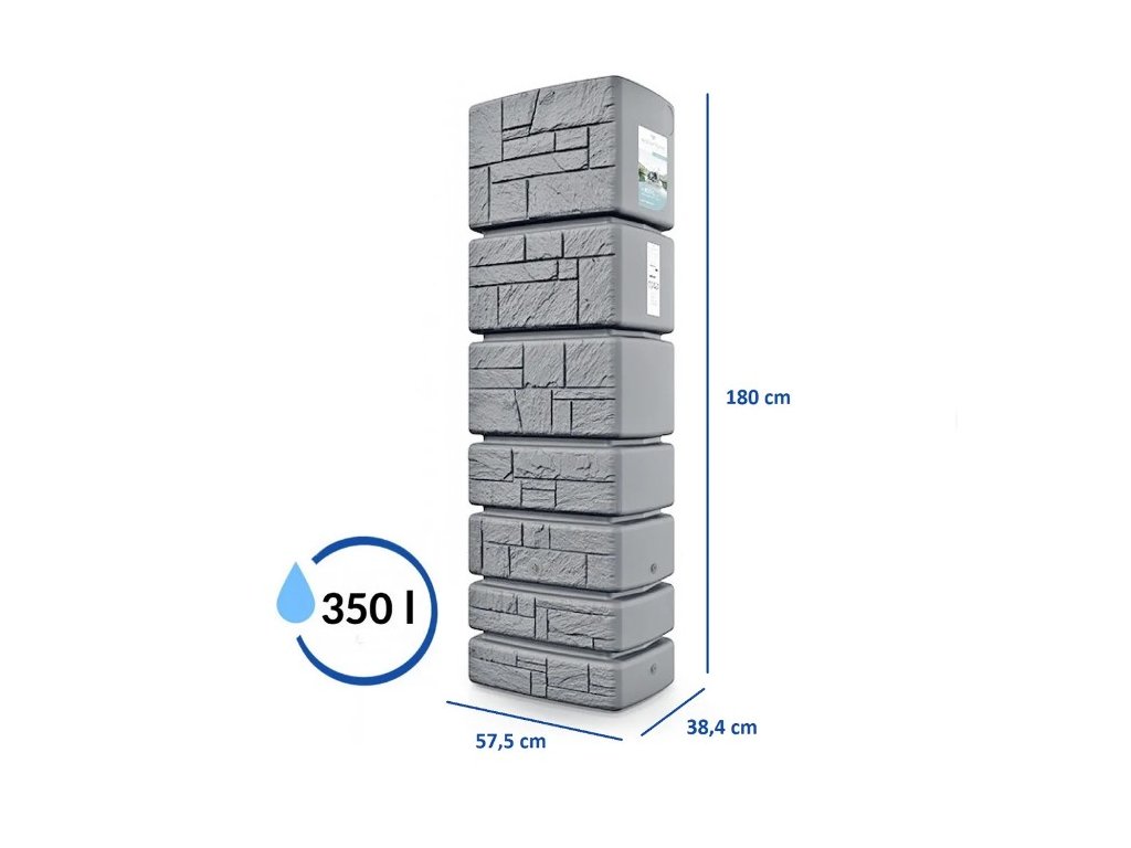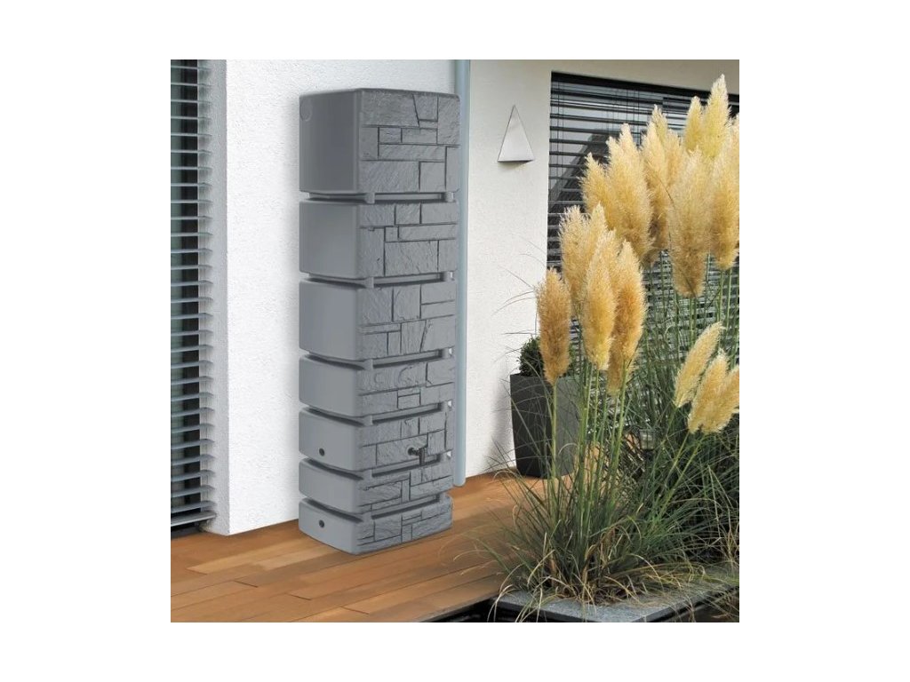Praktická nádrž na dešťovou vodu TOWER STONE o objemu 350 litrů v světle šedé barvě může být jednou ze součástí vašeho integrovaného systému úspory vody. Díky dešťové vodě je zalévání zahrady mnohem ekonomičtější a pro rostliny, jak okrasné a užitkové i prospěšnější. Díky obsahu dusíku ve vodě se tento prvek dostává k rostlinám pro ně přirozenou formou. Dešťová voda neobsahuje chlór, žádné soli vápníku a hořčíku, což jsou chemické látky, které způsobují trvalou nebo dočasnou tvrdost vody. I proto je vhodná pro kapkové závlahy, které se nezanášejí a lépe fungují.