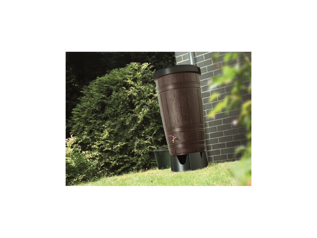 Podstavec, který je možné k sudu dokoupit, usnadňuje napouštění vody do konve a umístění vypouštěcího kohoutku co nejníže ke dnu sudu. Díky tomu jste schopni odčerpat téměř celý objem sudu a zbytečně v něm nezůstává stát nevyužitá voda. Zároveň pomáhá vytvořit potřebný tlak (samospád) při zalévání záhonku kapkovou závlahou.