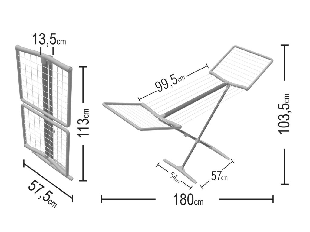 Rozložení a složení sušáku je velice jednoduché. Rozměry jsou 188 x 58 x 103,5 cm.