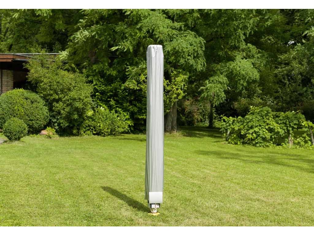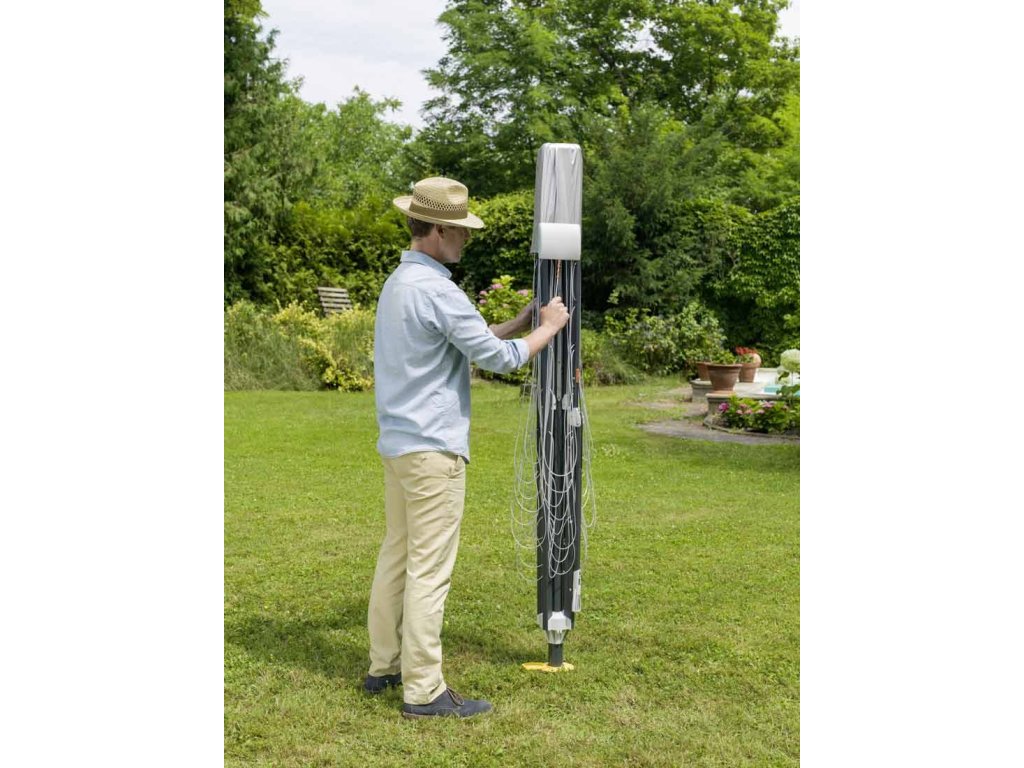 Sušák je chráněn speciálním vestavěným ochranným obalem. Ten zajistí, že šňůry jsou vždy čisté a připravené k pověšení prádla. Vzhledem k tomu, že je obal vestavěný nemusíte řešit kam vak uschovat během sušení, jen ho před použitím stáhnete do nosné trubky a po složení sušáku ho zase vytáhnete. Barva vaku je stříbrná.