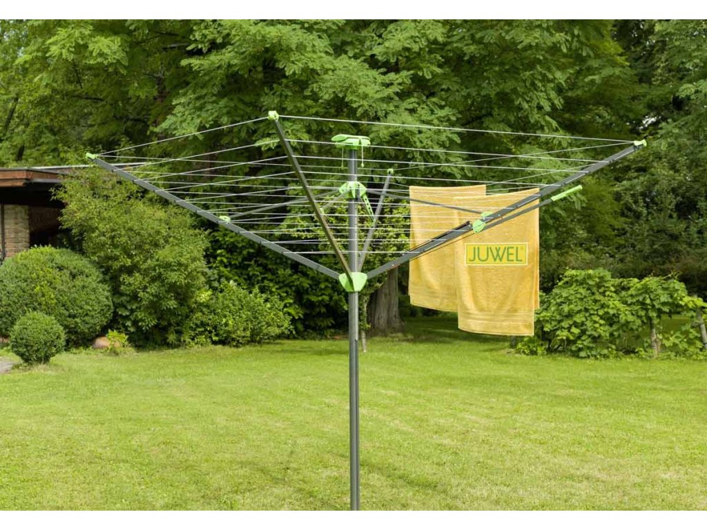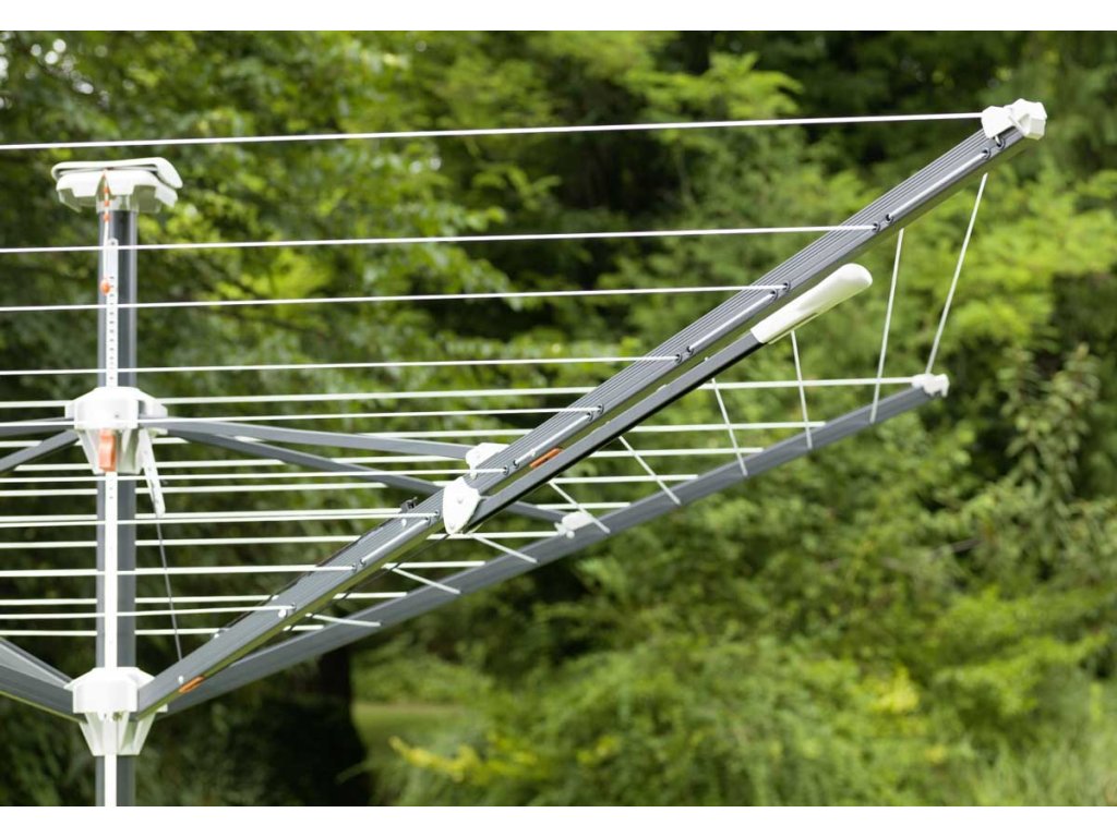 Celohliníkový zahradní sušák Juwel FUTURA ELEGANT XXL je ideální pomocník při sušení prádla na vaší zahradě. Sušák disponuje nastavitelnou výškou v rozmezí od cca 160 cm do cca 190 cm a k sušení prádla můžete využívat přibližně 55 m sušící plochy.