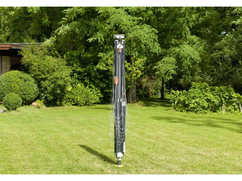 Montáž sušáku Juwel je naprosto jednoduchá a není potřeba nic betonovat. Ukotvení do země je řešeno pomocí plastového zemního šroubu, který se zašroubuje do země a do něj se zasune nosná tyč. Velkou výhodou zemního šroubu je, že sušák můžete umístit kdekoliv na zahradě, kde je možné šroub zavrtat pevně do země.