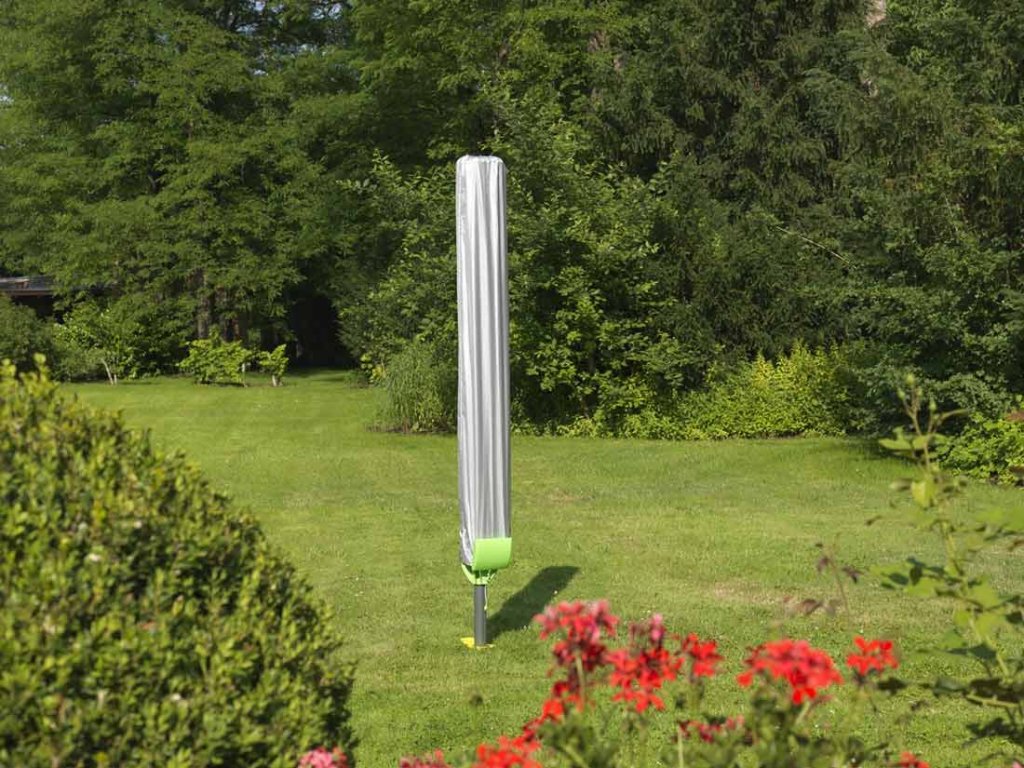 Sušák je chráněn speciálním vestavěným ochranným obalem. Ten zajistí, že šňůry jsou vždy čisté a připravené k pověšení prádla. Vzhledem k tomu, že je obal vestavěný nemusíte řešit kam vak uschovat během sušení, jen ho před použitím stáhnete do nosné trubky a po složení sušáku ho zase vytáhnete. Barva vaku je stříbrná.