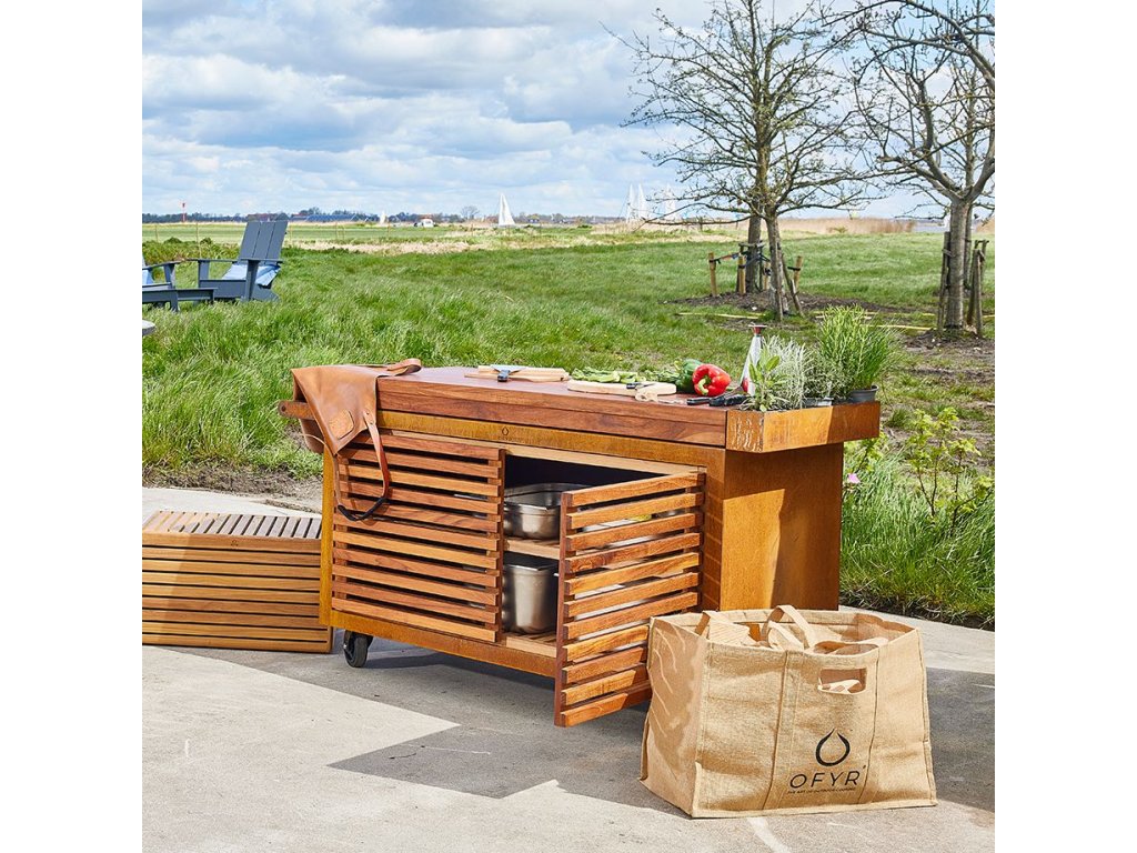 S těmito krásně zpracovanými policemi z teakového dřeva proměníte úložný prostor svého nábytku v plnohodnotnou otevřenou nebo zavřenou skříň, do které můžete uložit mnoho věcí. Policová konstrukce navíc dodá vašemu nábytku atraktivní vzhled. Policová konstrukce Insert Large (s dvířky nebo bez nich) je určena pro stoly OFYR Mise and Place Table PRO 135 a OFYR Kamado Table PRO 135.