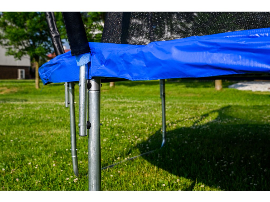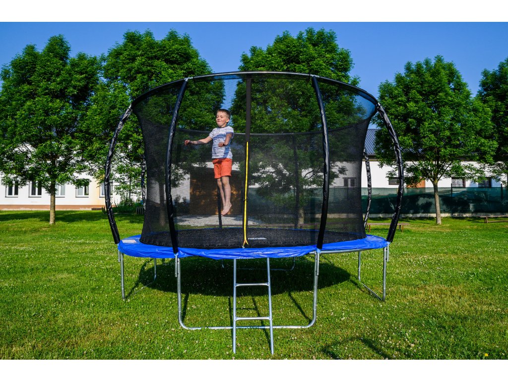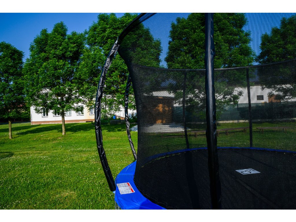 Tyče, držící ochrannou síť trampolín, jsou chráněny pěnou Pružiny na trampolíně jsou kryty dvojitou vrstvou – PVC a pěnou Ochranná síť trampolíny je z vnitřní strany konstrukce, skákání na trampolíně je tak bezpečnější Zahradní trampolínu snadno a rychle smontujete pomocí přiloženého návodu Konstrukce z pozinkované oceli zaručuje vysokou pevnost a odolnost Součástí balení je i žebřík k trampolíně