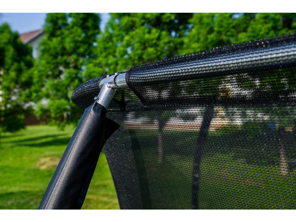 Kryty bočních sloupků trampolíny jsou také obaleny měkkou pěnou v nepromokavém pouzdře. Ochranná síť trampolíny je pevná a hustě propletená, aby se předešlo možnému zachycení (například prstu) v oku sítě. K rámu trampolíny je ochranná síť upevněna z jeho vnitřní strany, takže se děti při skákání o rámové sloupky zahradní trampolíny G21 SpaceJump neuhodí. Pro pohodlný vstup na trampolínu dodáváme trampolínu G21 SpaceJump s žebříkem, který se připevní pod otvor v ochranné síti. Při skákání můžete vstup na trampolínu zajistit uzavíratelným zipem a pojistnou přezkou.
