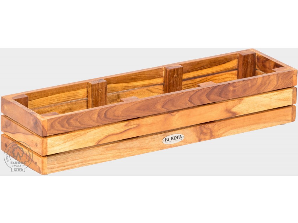 Teakový truhlík Fiori o rozměrech 66 x 17 cm a výšce 14 cm je vyroben z kvalitního indonéského teaku. Pečlivá řemeslná práce a čepované pevné spoje zaručují pevnost a stabilitu truhlíku. Je velice odolný vůči venkovním vlivům jako je déšť či slunce. Truhlík je ošetřen teakovým olejem.