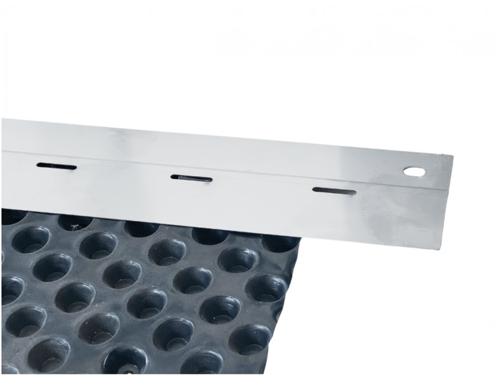 Ukončovací lišta VENTI N nerezová s ventilačními otvory je speciální stavební prvek k nopové fólii, který plní dvě klíčové funkce: zajišťuje správné zakončení nopové fólie a zároveň umožňuje ventilaci základové konstrukce, což přispívá k ochraně budovy před vlhkostí. Tato lišta se používá zejména u budov, kde je potřeba zabezpečit efektivní ventilaci a zároveň estetické zakončení nopové fólie, což je důležité například u sklepů, základů nebo jiných podzemních částí stavby.