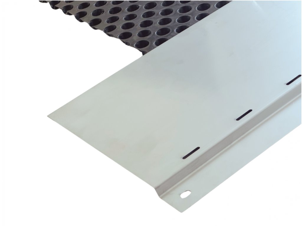 Ukončovací lišta VENTI N nerezová s ventilačními otvory je speciální stavební prvek k nopové fólii, který plní dvě klíčové funkce: zajišťuje správné zakončení nopové fólie a zároveň umožňuje ventilaci základové konstrukce, což přispívá k ochraně budovy před vlhkostí. Tato lišta se používá zejména u budov, kde je potřeba zabezpečit efektivní ventilaci a zároveň estetické zakončení nopové fólie, což je důležité například u sklepů, základů nebo jiných podzemních částí stavby.
