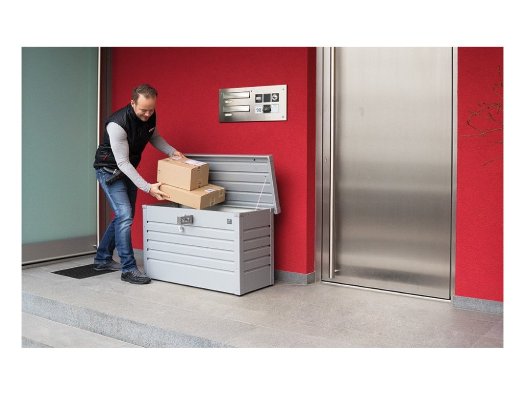 Nejste během dne doma a potřebujete, aby do boxu měl přístup i někdo další? Potřebujete si předávat zásilky bez vaší přítomnosti? Umístěte před dveře svého domu nebo firmy elegantní úložný box s bezpečnostním zámkem prémiové kvality, který vyhovuje i nárokům moderní architektury. Box je široký 101 cm a 46 cm hluboký, proto je vhodný i pro větší zásilky, které mohou mít rozměry až 92 x 37,5 x 56 cm. Jedná se o nejmenší, speciálně upravenou variantu zahradního boxu Freitzeitboxu. Úložné boxy nabízíme v pěti barevných provedeních.