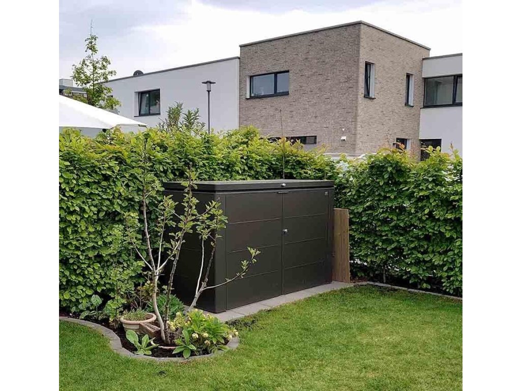 Nemáte dostatek prostoru a potřebujete uklidit zahradní vybavení, grilovací náčiní, jízdní kola, popelnice a další věci, které chcete mít pod střechou a bezpečně pod zámkem? Pořiďte si praktický víceúčelový úložný box HighBoard prémiové kvality, který vyhovuje i nárokům moderní architektury. Box je široký 200 cm (přední strana s dveřmi) a 84 cm hluboký. Úložné boxy HighBoard nabízíme ve třech barevných provedeních a dvou velikostech.