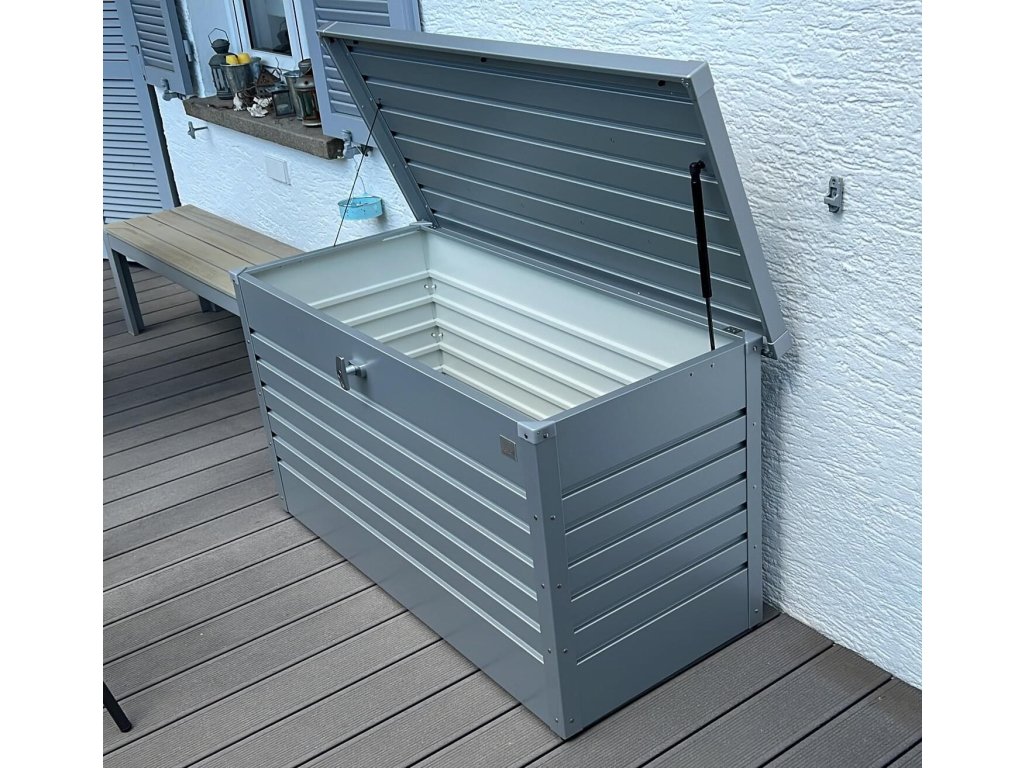 Stylový úložný box FreizeitBox prémiové kvality, který vyhovuje i nárokům moderní architektury je ideální k uložení sedáků, lehátek, skládacích židlí, hraček, sportovních a kempingových doplňků. Box je široký 134 cm a 62 cm hluboký. Úložné boxy FreizeitBox nabízíme v pěti barevných provedeních a čtyřech velikostech. Díky tomu se může stát FreizetBox i designovým prvkem na vaší zahradě, terase, u bazénu nebo v pergole.