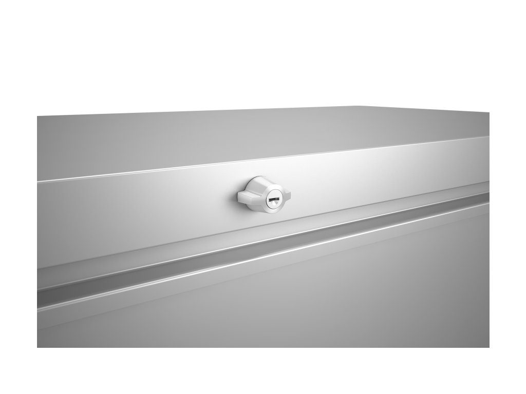 Otočný knoflík se standardním cylindrickým zámkem s náhradním klíčem zabraňuje nežádoucímu vniknutí. Konstrukce dveří je extrémně robustní.