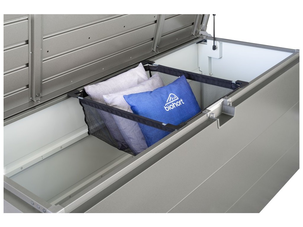 Se základním vybavením vaše možnosti nekončí. V nabídce volitelného příslušenství najdete další praktické pomocníky jako např. síť na víko, nebo závěsný koš. Pro snazší manipulaci z boxem, jsou v nabídce přídavná kolečka. Díky tomu si box můžete ještě více uzpůsobit vlastním představám a mnohostrannému využití.