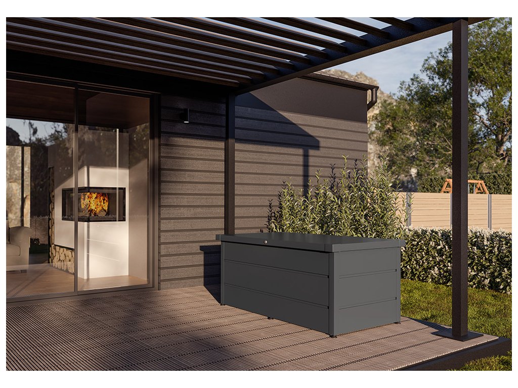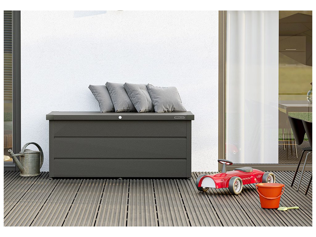 Box můžete nechat po celý rok venku, je voděodolný, s neviditelnou integrovanou ventilací. Díky tomu uskladněné věci nepodléhají plísním. Můžete v nich skladovat i polstry a potahový materiál pro zahradní nábytek. Box můžete umístit na balkon, terasu, k zahradnímu bazénu, do zahradního domku nebo garáže.
