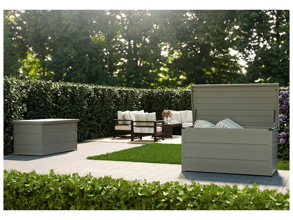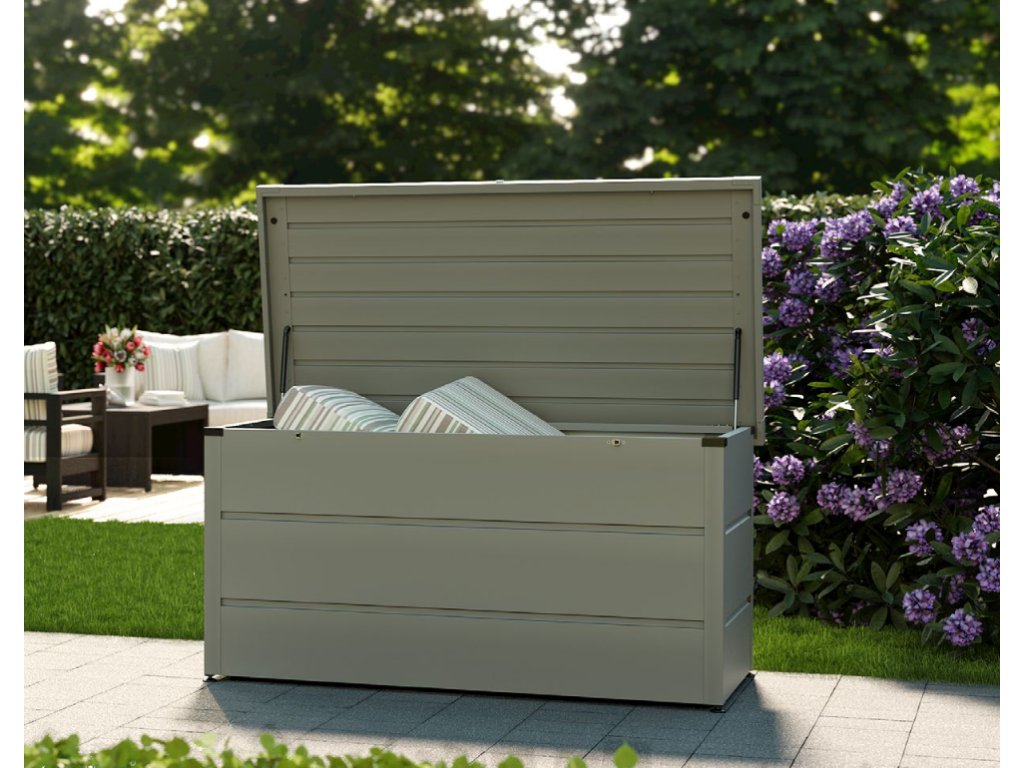 Box můžete nechat po celý rok venku, je voděodolný, s neviditelnou integrovanou ventilací. Díky tomu uskladněné věci nepodléhají plísním. Můžete v nich skladovat i polstry a potahový materiál pro zahradní nábytek. Box můžete umístit na balkon, terasu, k zahradnímu bazénu, do zahradního domku nebo garáže.