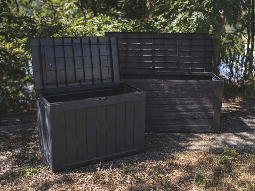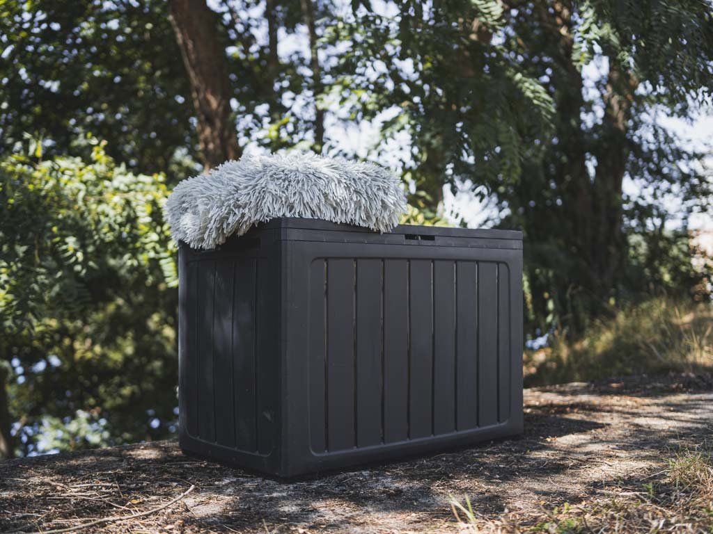 - Praktické využití – ideální pro uložení zahradních podsedáků, dek, nářadí, menšího zahradního nábytku nebo dětských hraček. Vhodné také na sezónní uskladnění různých venkovních doplňků.