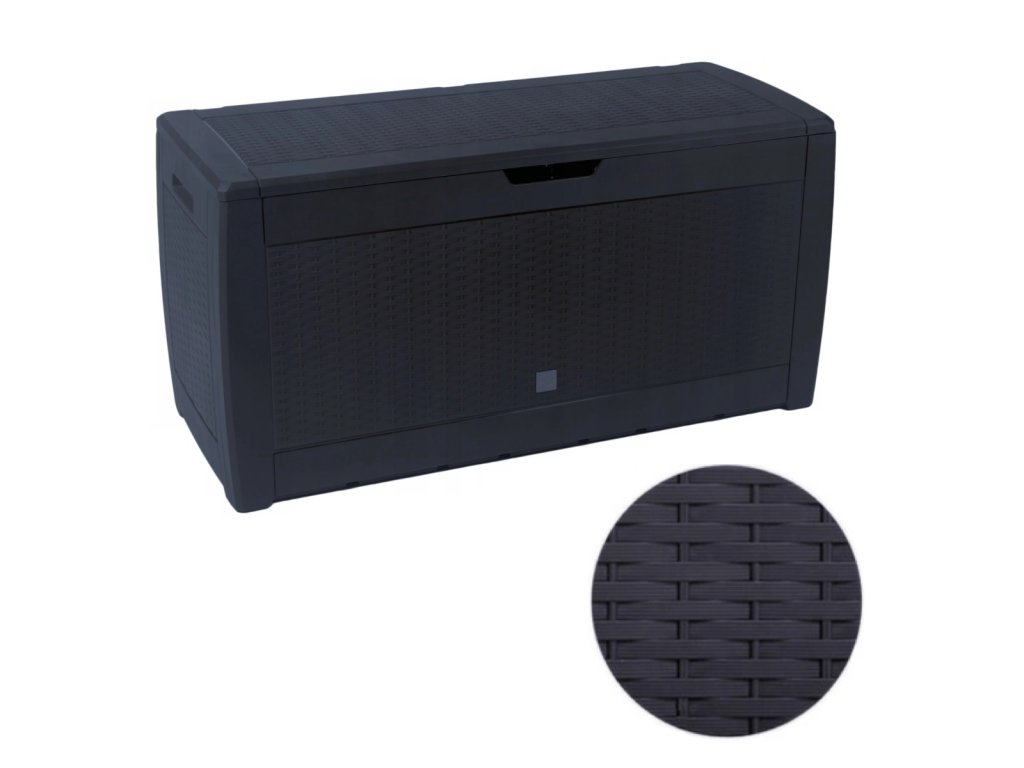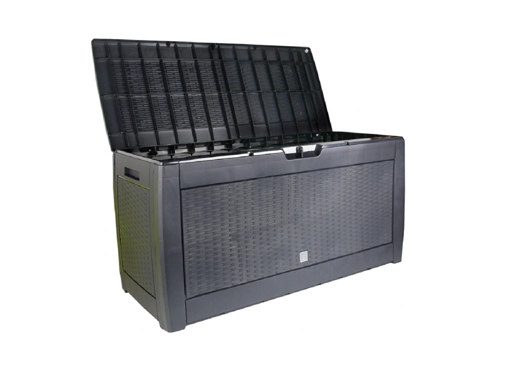 Box chrání uschované předměty před případným deštěm. Lehce v něm uschováte polštáře ze zahradního nábytku, deky, zahradní potřeby, menší nábytek nebo hračky pro děti. Lze ho zabezpečit i visacím zámkem a zamknout cennější věci uvnitř.