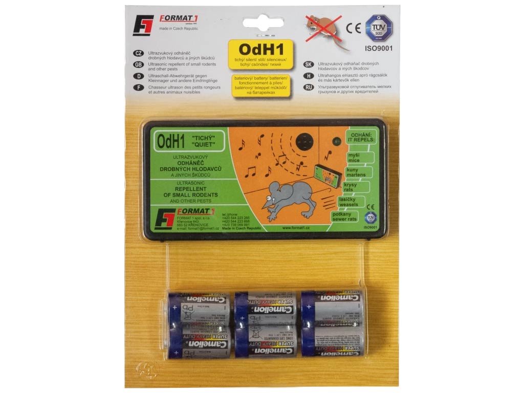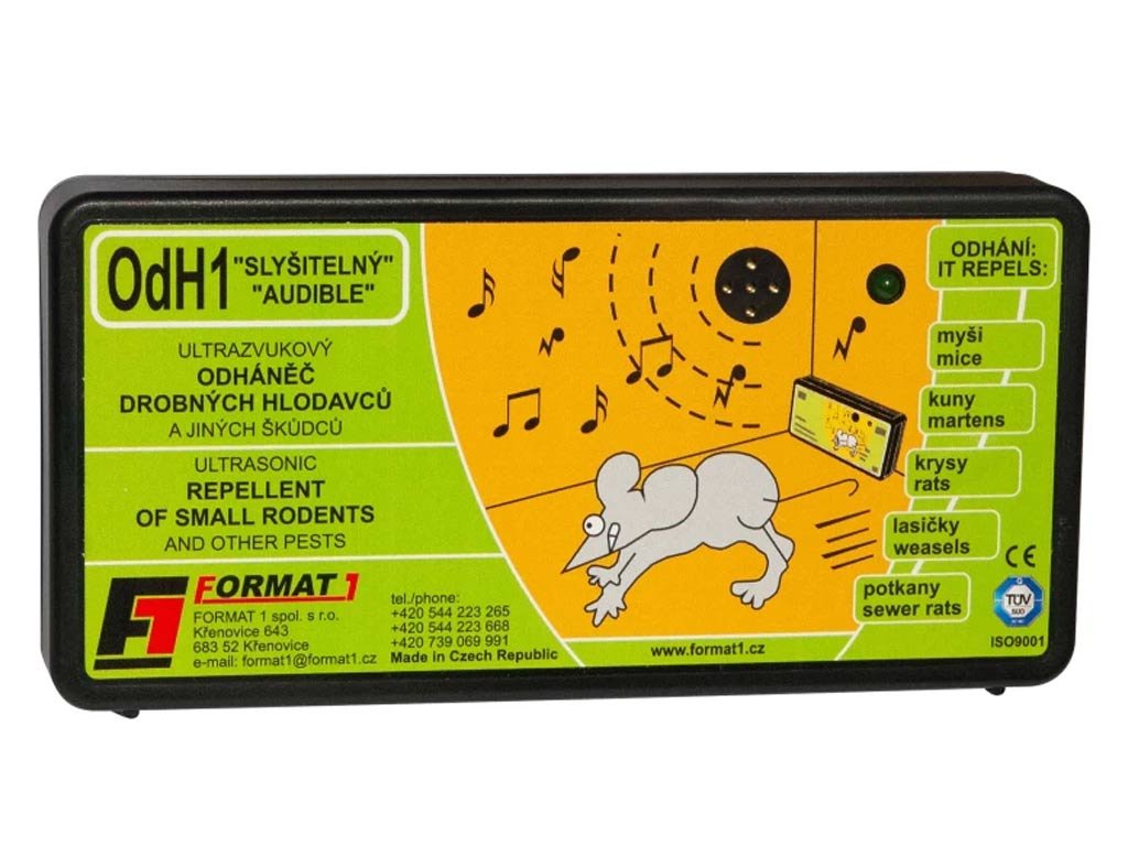 Ultrazvukový plašič myší a kun ODH1 „slyšitelný“ je český výrobek určený k ochraně neobydlených prostor před myšmi, kunami, krysami, lasičkami a dalšími škůdci. Funguje bez chemie a je zcela bezpečný pro domácí zvířata i ptáky.