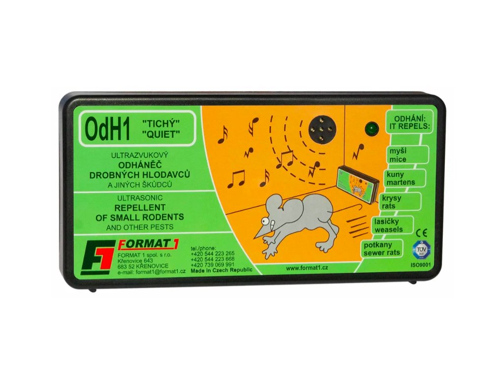 ODH1 tichý plašič je kvalitní český ultrazvukový plašič určený k odpuzování myší, krys, kun, lasiček a potkanů. Využívá bezpečnou a humánní technologii bez chemie – neškodí člověku ani domácím zvířatům a lze jej bez obav používat i v obytných prostorách.
