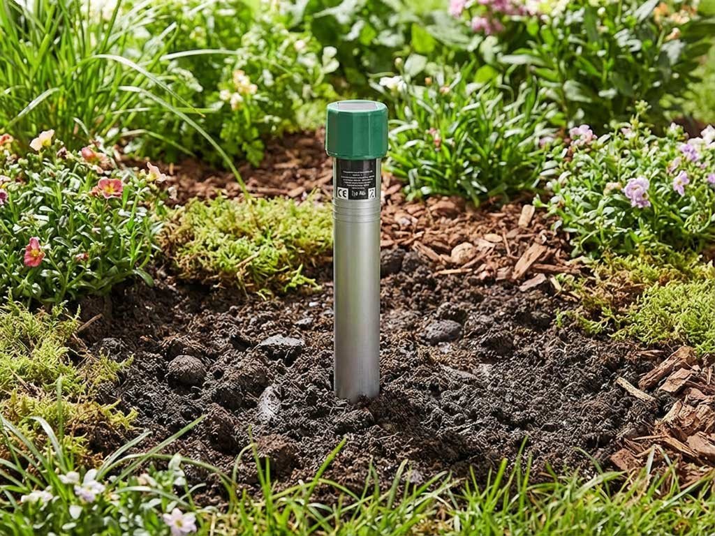 Zařízení je napájeno pomocí 4 baterií R20 (nejsou součástí balení) a pracuje s proměnlivou frekvencí 300–1000 kHz. Signály jsou vysílány každých 20–40 sekund v náhodném pořadí, což zabraňuje škůdcům přivyknout. Pokrytí až 1500 m² znamená ochranu i větších pozemků. Díky vodotěsnému krytu můžete plašič bez obav používat celoročně, ať už je sucho, déšť nebo sníh. Instalace je jednoduchá – zapíchněte zařízení vertikálně do země cca 20 cm hluboko. Nejlépe funguje ve vlhké půdě, která zajišťuje lepší přenos vibrací.