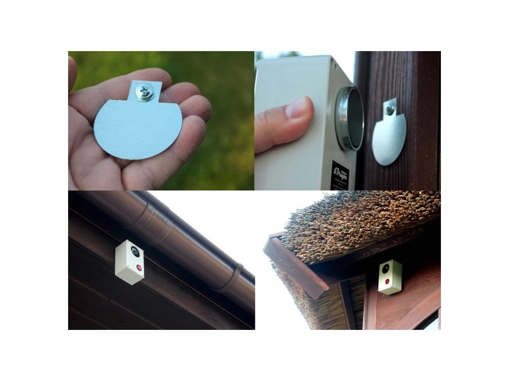 Díky silnému magnetickému držáku lze zařízení jednoduše připevnit na kovové povrchy – např. zábradlí, potrubí, parapety, okapy či topení. V balení je navíc kovový přívěšek, který lze přišroubovat na jakýkoli nekovový povrch pro snadné uchycení přístroje. Přístroj je napájen čtyřmi AA bateriemi, které jsou součástí balení. Odpuzovač má přední přepínač pro snadné ovládání provozu.