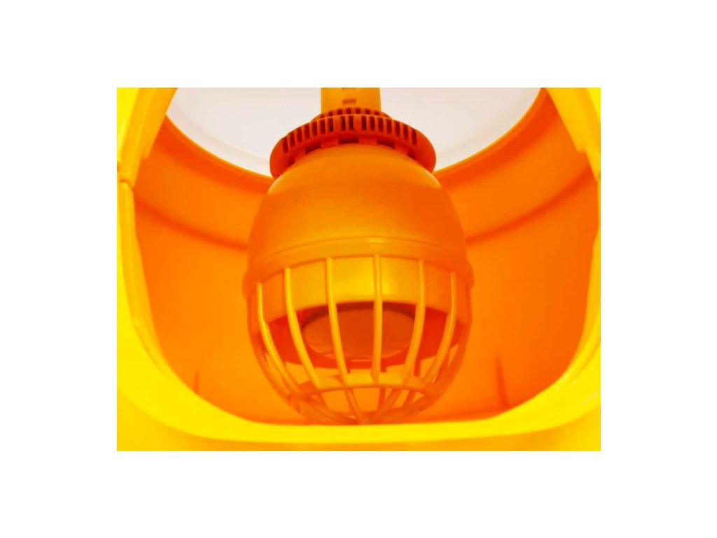 - Efektivní ohřev: Součástí balení je 75W žárovka (závit E27), která zajišťuje plynulý přísun tepla. Teplotu lze manuálně regulovat změnou výšky infralampy.