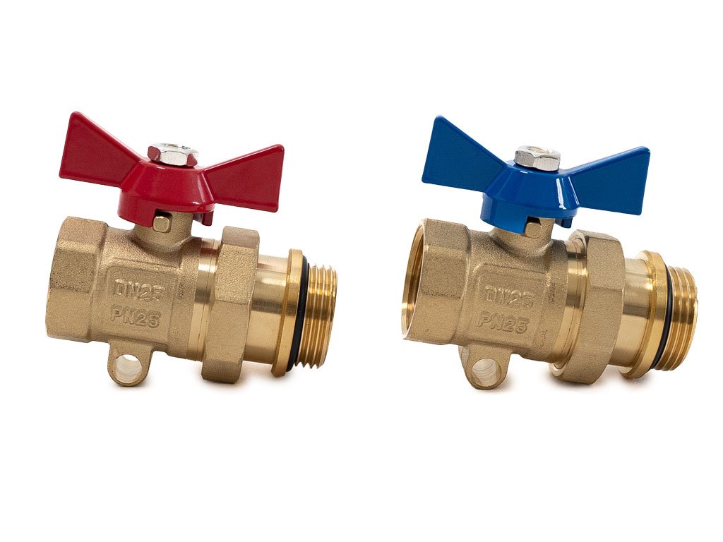 Ventil kulový přímý, se šroubením 1" a těsněním + příprava na teploměr (pár)