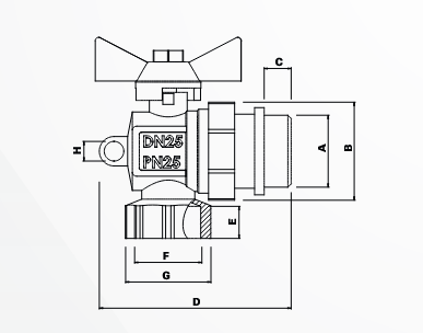 Ventil kulový rohový, se šroubením 1" a těsněním + příprava na teploměr (pár)