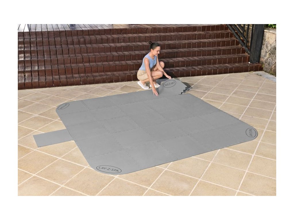Odolná podložka ochrání dno vaší vířivky před poškozením a chladem. Balení obsahuje sestavitelnou podložku pod vířivku a samostatnou podložku pod filtraci. Izolační podložka je určena pro vířivky BESTWAY Lay-Z-Spa.