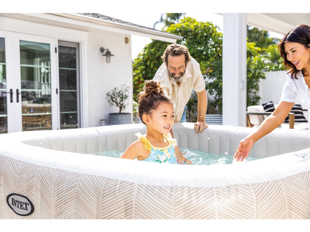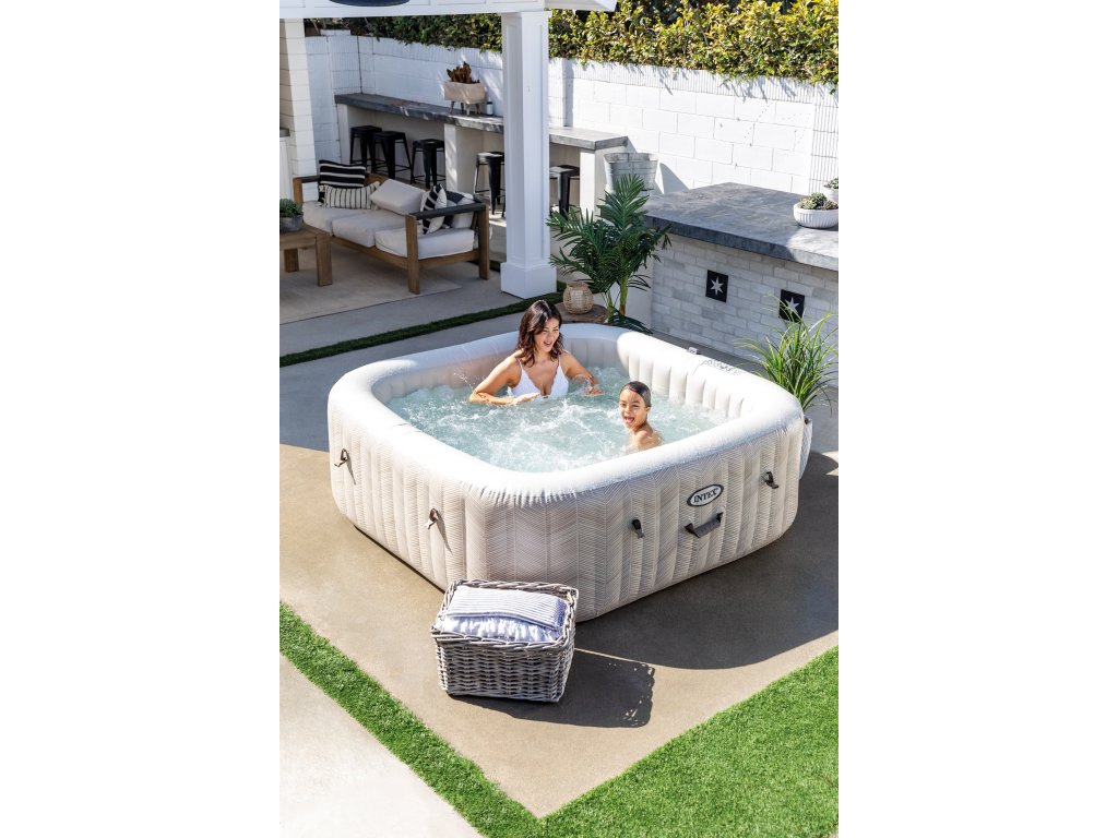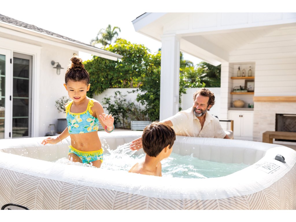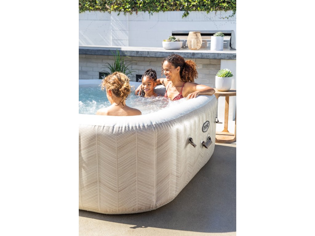 Vytvořte si doma vlastní stylovou relaxační zónu s vířivkou Intex PureSpa Chevron Bubble Deluxe, která vyniká moderním poutavým pruhovaným designem a elegantním čtvercovým tvarem. Tato verze poskytuje komfortní prostor až pro 6 osob, takže je ideální pro rodinnou pohodu i posezení s přáteli. S objemem 1098 litrů a příjemně tvarovaným vnitřním prostorem nabízí tato vířivka výjimečné pohodlí pro všechny. O uvolňující masážní zážitek se stará 170 výkonných bublinkových trysek, které rovnoměrně obklopí celé tělo jemným, ale intenzivním proudem. Dokonalý relax tak máte na dosah jediným stiskem tlačítka. Každodenní používání je maximálně snadné díky inteligentní úpravě vody: vířivka kombinuje systém změkčování tvrdé vody a integrovaný solinátor, který pomáhá udržovat vodu přirozeně čistou a příjemnou pro pokožku. Nová filtrační kartuše typu S2 přináší až o 65 % větší filtrační plochu, což výrazně zlepšuje kvalitu filtrace. Zároveň má nový design pro rychlou a bezproblémovou výměnu. Robustní třívrstvé PVC SuperToughzajišťuje výjimečnou stabilitu, pevnost a dlouhou životnost, takže vířivka skvěle obstojí i při pravidelném venkovním používání. Ovládání je jednoduché a intuitivní — můžete využít odnímatelný bezdrátový panel nebo pohodlné řízení přes mobilní aplikaci. V balení nechybí vše, co potřebujete k provozu: kryt proti nečistotám, podložka pro ochranu dna, transportní taška, hadice na nafukování ani kvalitní filtrační kartuše. Pokud hledáte prostornou vířivku, která kombinuje moderní vzhled, praktické funkce, pohodlí a snadnou údržbu, Intex PureSpa Chevron Bubble Deluxe pro 6 osob je ideální volbou pro každodenní domácí wellness. Technické parametry:Hmotnost balení: 50.28 kg Barva: Chevron Materiál: SuperTough 3-vrstvý PVC Kapacita: 1.098 l Počet míst k sezení: 6 Bublinkové trysky: 170 Teplotní rozsah: 10 - 40°C Ovládací panel: Odnímatelný bezdrátový Vestavěný elektronický systém: Systém HWS změkčování vody a vestavěný solinátor s produkcí přírodního chloru Ovládání přes aplikaci: ano Kompatibilní kartuše: S2 Rozměry: 196 x 71 x 196 cm Rozměry balení: 60.01 x 80.33 x 54.93 cmObsah balení:tělo vířivky technologická jednotka kryt na vířivku hranatá podložka pod vířivku 2 ks filtrační kartuše S2 přepravní taškaDoplňkové parametry
