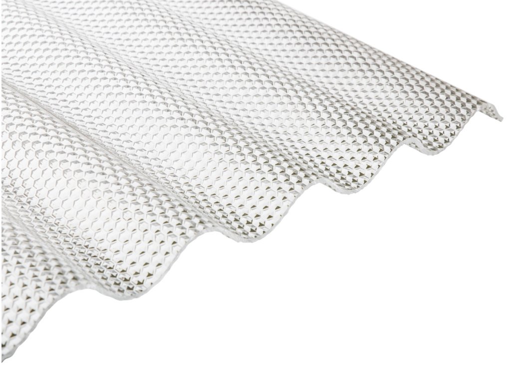 Tato prémiová vlnitá střešní krytina Guttagliss WABE s 10ti letou zárukou je vyrobena z polykarbonátu, což je nejpoužívanější plast pro prosvětlovací plastové krytiny. Polykarbonát je velice tuhý a odolný vůči extrémním klimatickým podmínkám (krupobití), proto patří mezi nejvhodnějí krytiny pro zastřešení pergol. Vlnité desky Guttagliss WABE jsou "Mercedesem" mezi prosvětlovacími deskami a vyznačují se extrémně vysokou životností při zachování své světelné propustnosti. Vlnitá střešní krytina Guttagliss WABE má tloušťku 2,6 mm a speciální pyramidovou strukturu spodní strany desky. Tato struktura zajišťuje vysokou světelnost a optimalizuje sluneční záření rovnoměrným rozkladem slunečních paprsků po celé šířce střešní plochy. Materiál desky je UV odolný. Je používán v západní Evropě jako č.1 v zastřešení pergol. Jako jediný umožňuje poskytnutí smluvní záruky až 10 let.