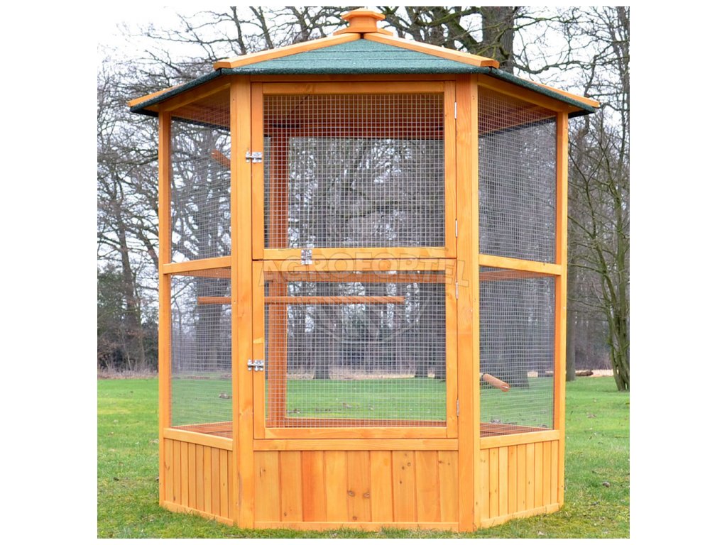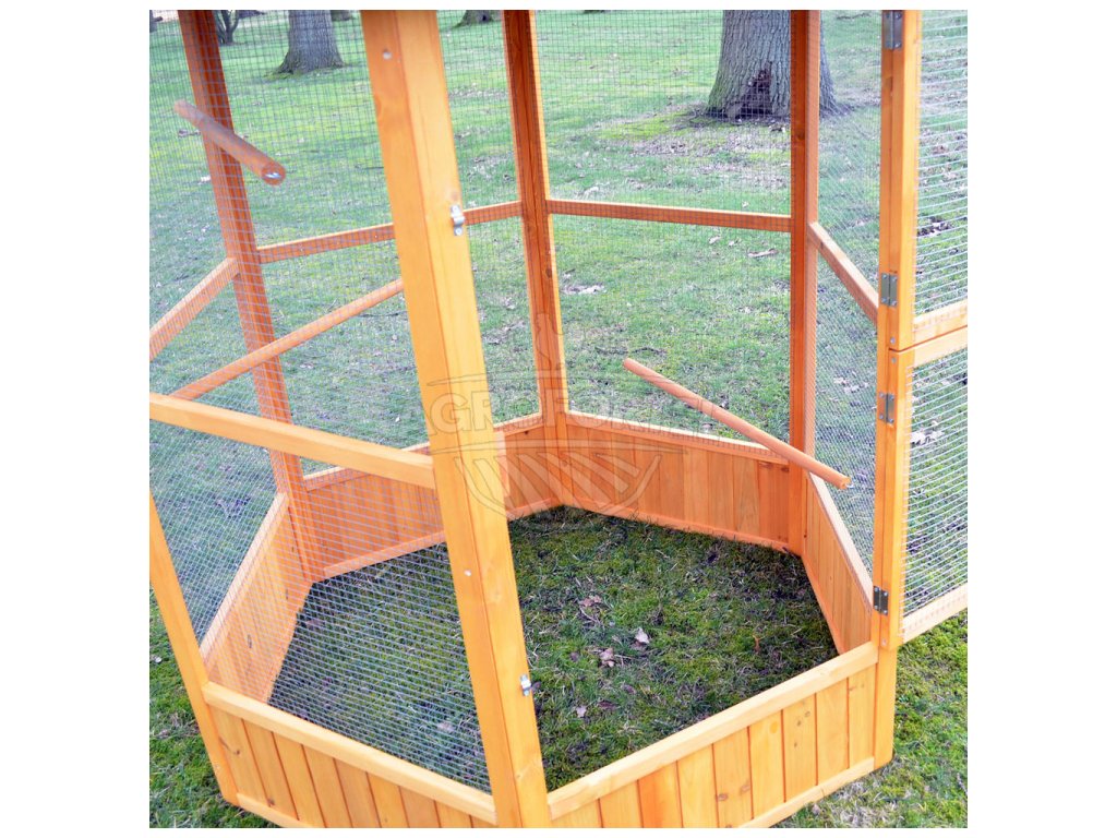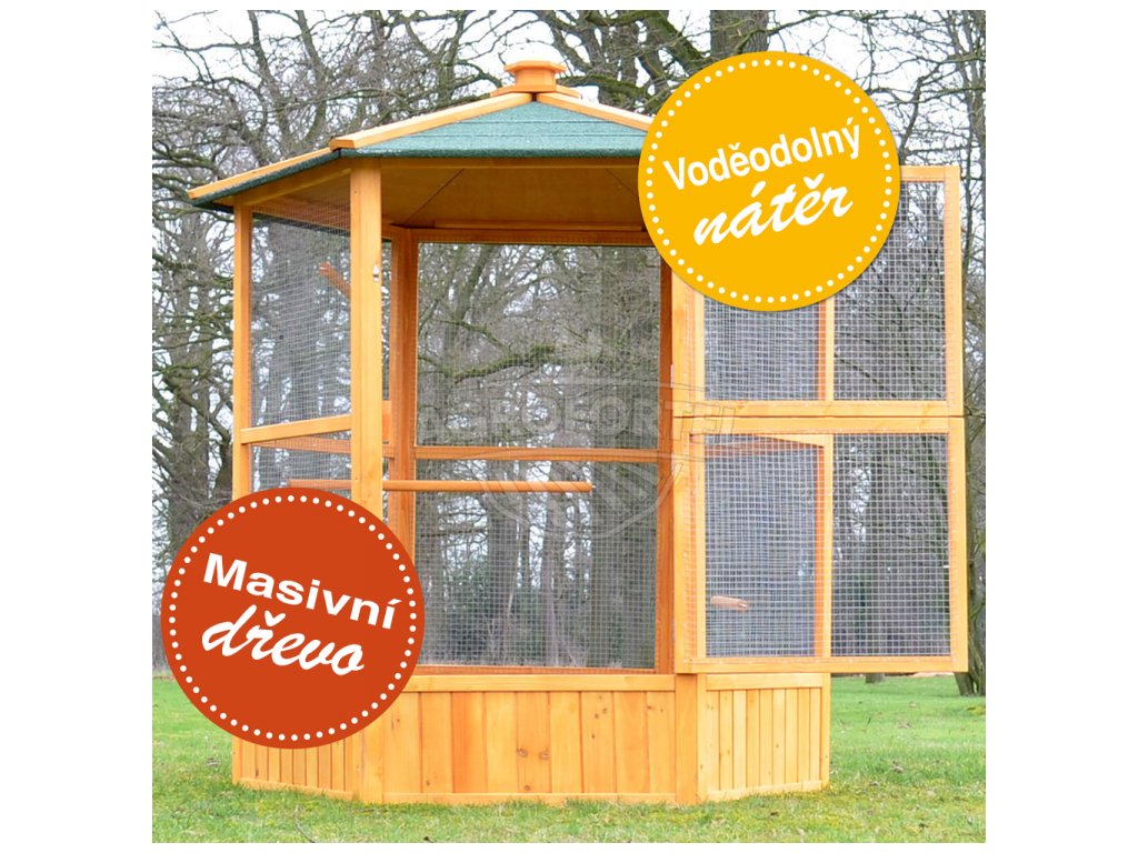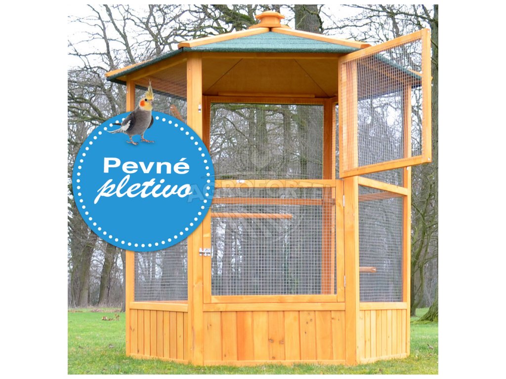 Voliéra pro ptáky - MAXI - masivní dřevo, šestihranná