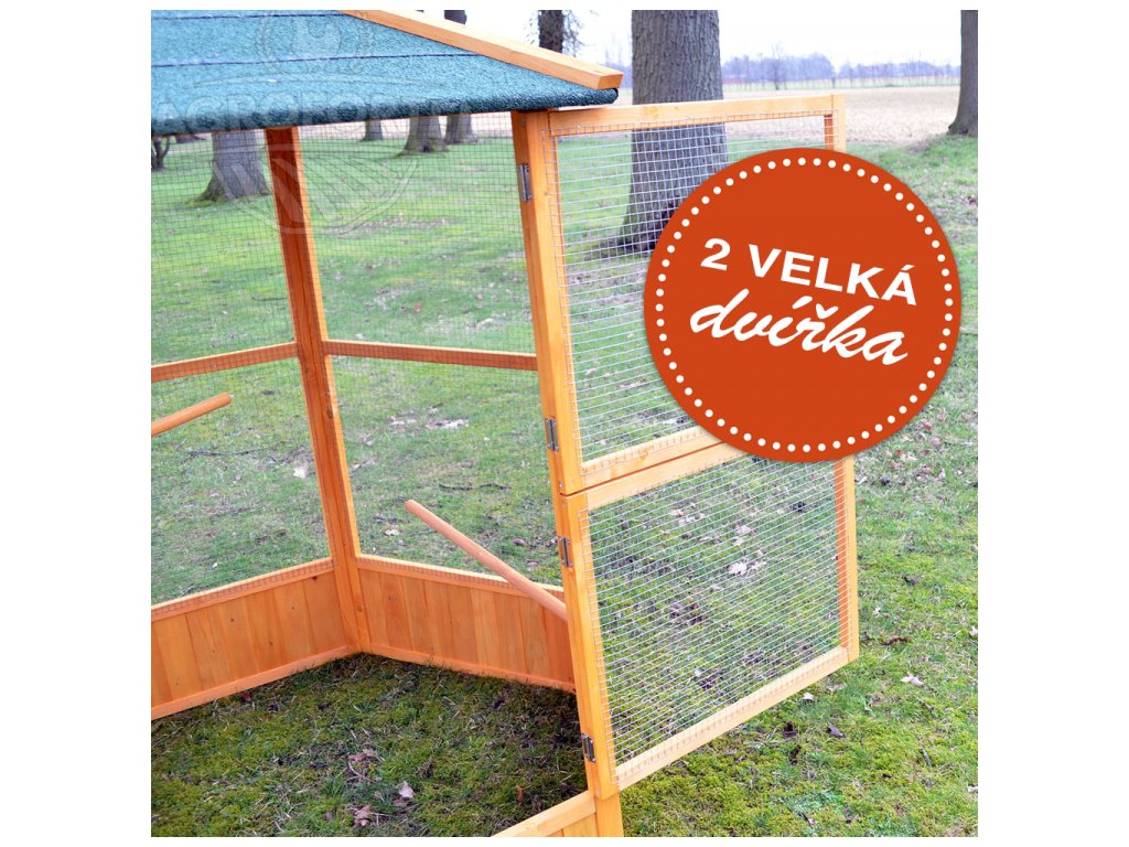 Jednoduchý přístup k čištění a krmení: Díky dvěma velkým dveřím (o velikosti přibližně 73 x 50 cm) je přístup k čištění a krmení velmi snadný. Praktické rozmístění dveří zajišťuje, že každá část voliéry je snadno dostupná.