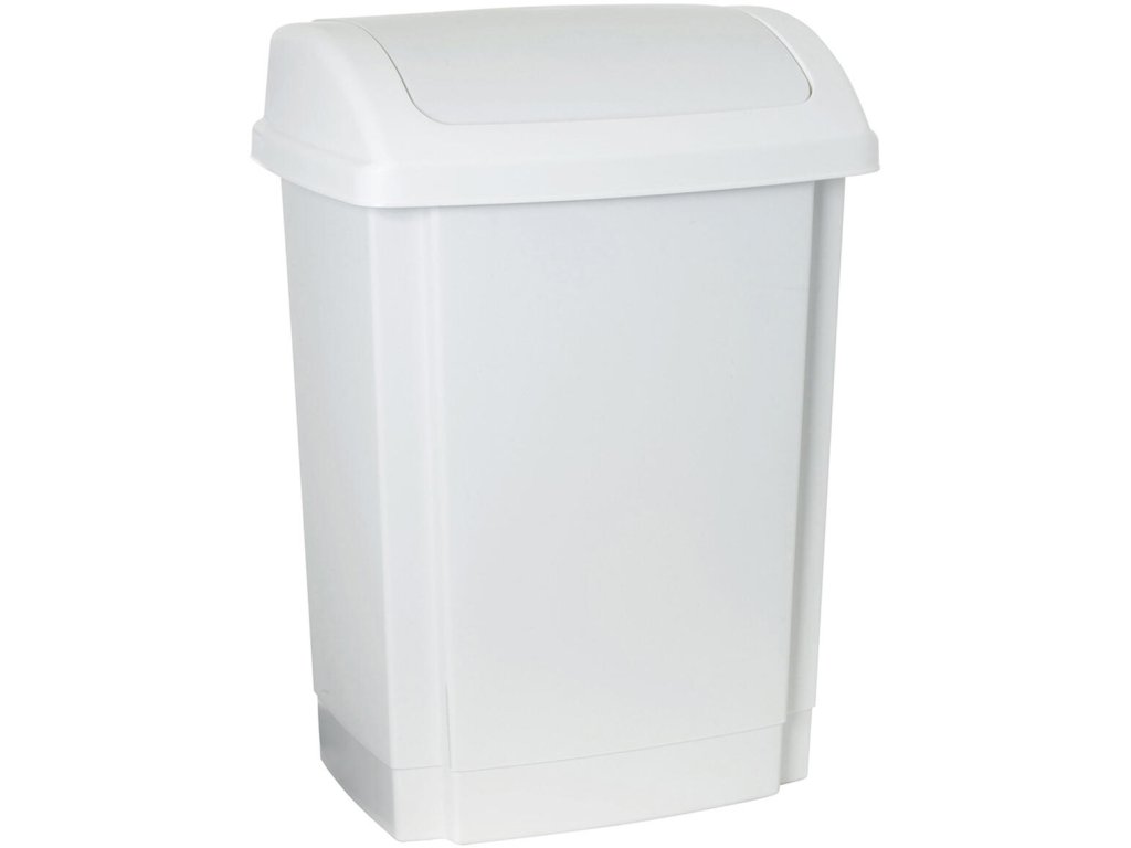 Odpadkový výklopný koš 10 l, PH BÍ. - odpadkový koš s výklopným víkem - objem 10 l - snadná údržba, omyvatelný povrh - víko lze ohnout dozadu, aby byl zajištěn lepší přístup k nádobě, lze jej sundat, takže je snadné vyměnit nebo fixovat pytel na odpadky rozměry (Š x H x V): 24,5 x 19,3 x 35,2 cm materiál: polypropylen barva: bílá Odpadkový koš, vhodný do kuchyně, kanceláře nebo do studentského pokoje.
