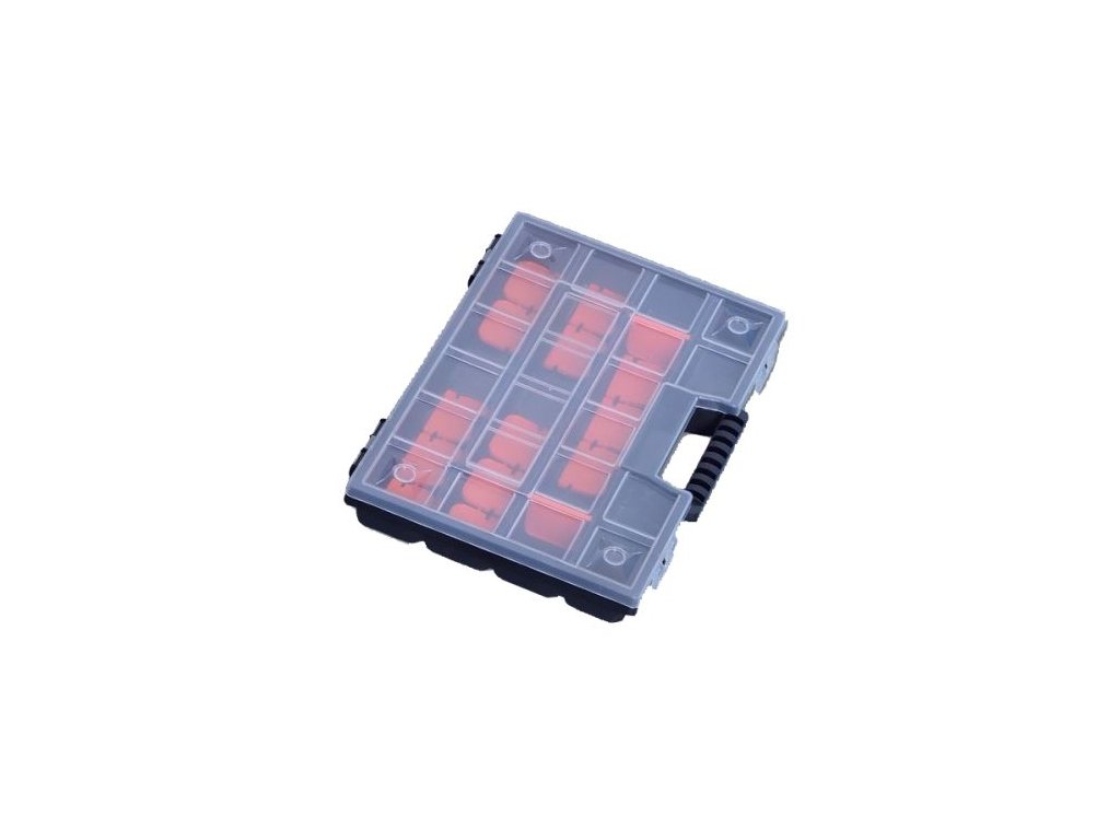 Pohodlné řešení, které umožňuje upravit velikost a počet oddílů, abyste zde uložili předměty libovolné velikosti.Průhledný kryt umožňuje bez otevření vidět, co je uvnitř a se silnou rukojetí organizátor lze snadno přemístit na jiné místo. Maximální počet oddílů je 18 ks.