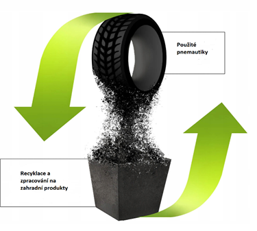 Materiál získaný z automobilových pneumatik je skvělou druhotnou surovinou. Má některé vynikající vlastnosti, o které by byla škoda přijít. Vyřazené automobilové pneumatiky jsou zbaveny ocelové výztuže a mechanicky rozdrceny na granulát různých velikostí. Gumový granulát vyrobený z pneumatik je dále zpracováván do požadovaných výrobků. Díky minimální rozložitelnosti je trvanlivý, inertní a pružný. Dokonale tlumí nárazy, vibrace a je měkký. Díky těmto vlastnostem se využívá pro celou řadu potřebných výrobků v domácnosti, zahradě a stavebnictví.