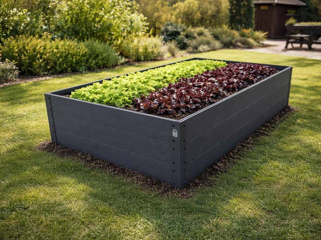 Vyvýšený záhon s elegantním, luxusním vzhledem kombinuje estetiku přírodního dřeva s vysokou odolností moderního materiálu. Je stabilní, nedeformuje se, odolává UV záření, vlhkosti i výrazným teplotním výkyvům. Na rozdíl od dřeva nehnije ani neplesniví. Povrch desek věrně imituje strukturu dřeva, přitom záhon zůstává bezúdržbový, snadno se instaluje a je šetrný k životnímu prostředí díky použití recyklovatelného materiálu GPPS.