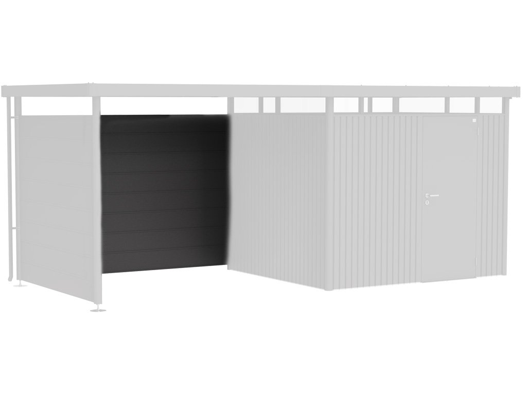 Zadní stěna pro postranní střechu zahradního domku Highline, která slouží k ochraně soukromí. Společně s boční stěnou přemění přístřešek v oázu klidu a útulný altán. Díky možnosti dovybavení v souladu s barvou domku se otevírají zcela nové možnosti použití.