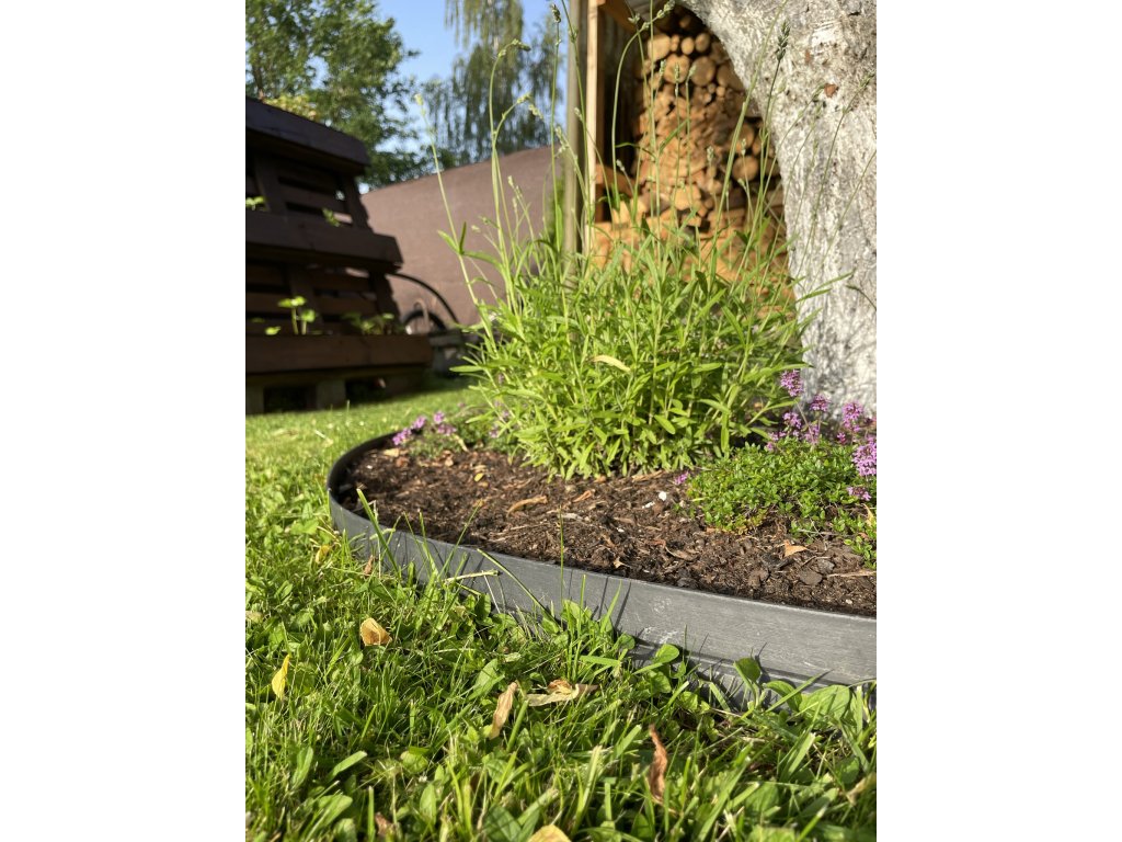 Plastový obrubník Amispol je skvělý prvek pro neviditelné ukončení okrajů zatravňovací či zámkové dlažby. Je taktéž vhodný k oddělení dvou zahradních ploch, například chodníků, záhonů s mulčovací kůrou nebo štěrkem a trávníku. Tento obrubník se zcela zapustí do země a zůstává skryt. Je vyrobený z tvarovatelného recyklovaného plastu, který lze po nahřátí v teplé vodě různě ohýbat a tvarovat. Tento typ obrubníku je vhodný i pro umístění do svahu, kde udrží štěrk, kamínky nebo mulčovací kůru.