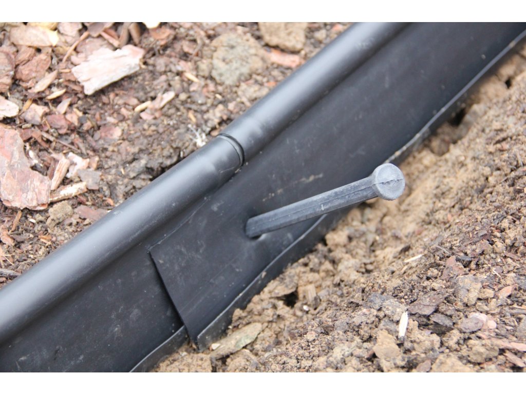 Při montáži obrubníku je nutné ho správně ukotvit k podkladu. Fixaci provedete v běžném podloží pomocí plastových hřebů a v jílovitém či pevnějším podloží pomocí kovových hřebů. Rovné úseky je třeba ukotvit pomocí 3 kusů hřebů na 1 metr délky a oblouky pomocí 6 kusů hřebů na 1 metr délky. Po ukotvení se obrubníky přisypou zeminou do požadované výšky.