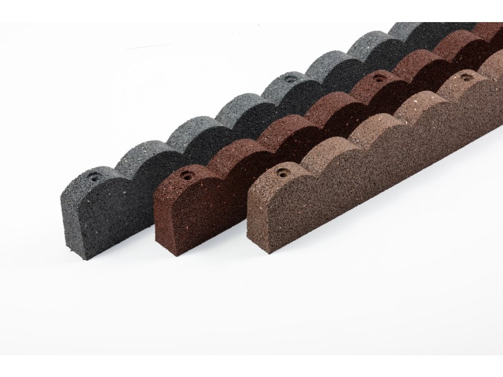 Scalloped je řada ekologických zahradních lemů, která je vyrobena z recyklované pryže, z udržitelného zdroje recyklovaných pneumatik osobních a nákladních automobilů, které se svážejí ze skládky. Gumová drť se sbírá z použitých pneumatik a přeměňuje se na užitečné produkty pro vaši zahradu. Díky pryži jsou lemy pružné, odolné v každém počasí včetně extrémního horka nebo extrémního chladu. Neztrácí ani nemění barvu v průběhu let.