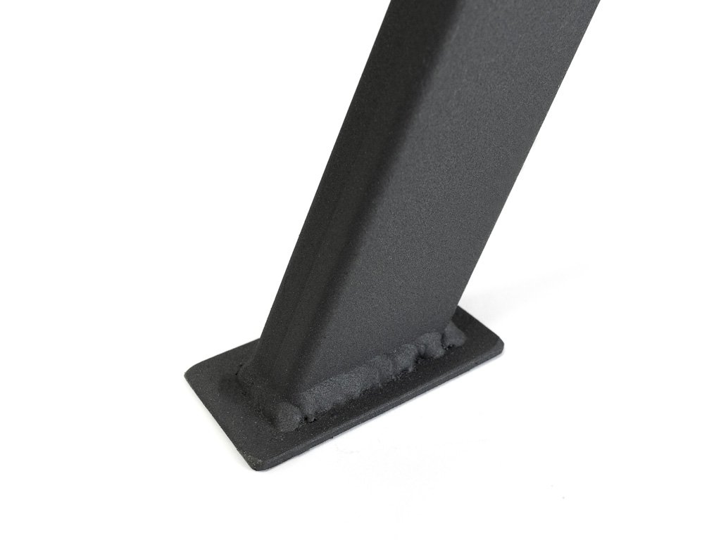 Všechny nohy jsou opatřeny navařenými pacičkami, které zamezují zaboření kozy do země. Na jedné straně má stojan dvě uši/držáky pro snazší manipulaci či pro úchop s cílem zvýšení stability. Koza lze pro skladování složit se skladovacími rozměry 120 x 90 cm. Maximální rozpětí stojanu zajišťuje navařený a pevný řetízek.