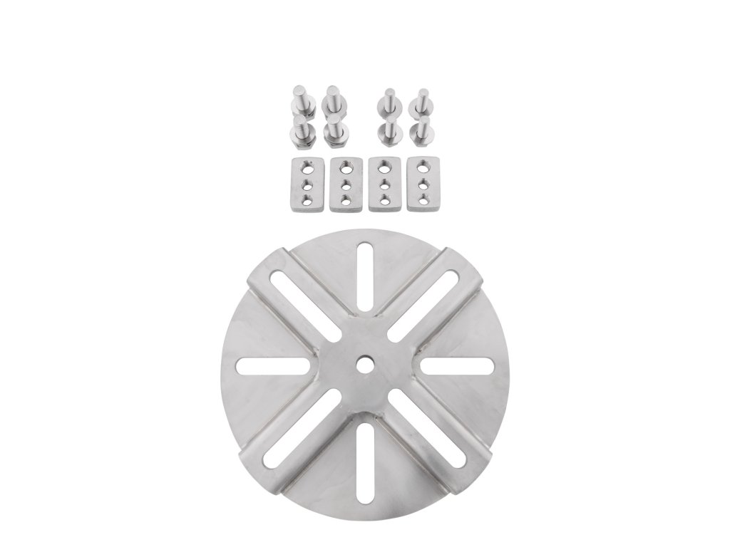 Univerzální adaptérová deska z nerezové oceli je určená pro připevnění slunečníku k žulové desce 140 kg nebo k zemní kotvě, která je vhodná pro všechny výkyvné slunečníky Doppler/Derby.
