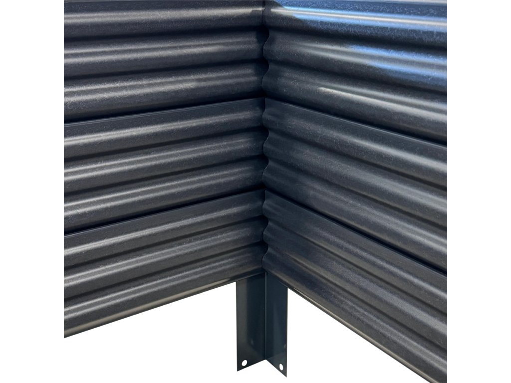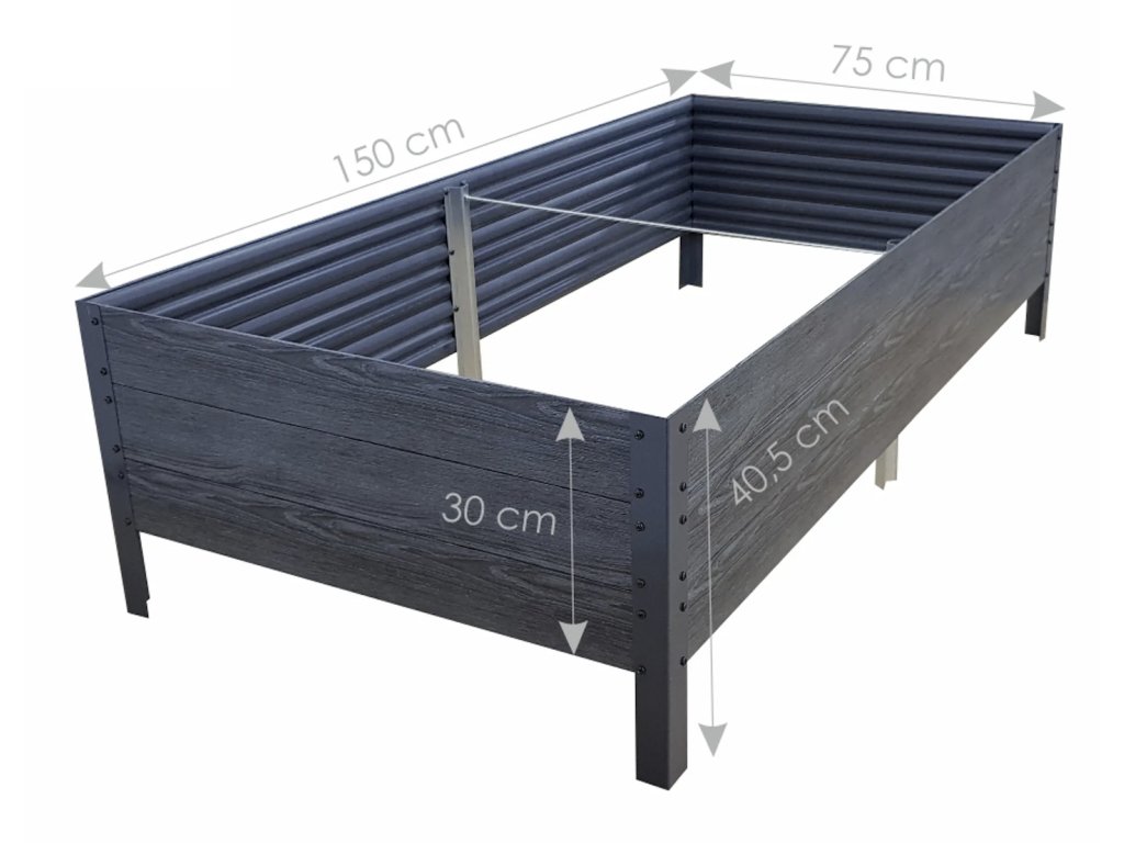 Nohy a příčka záhonu je vyroben z pozinkovaného profilu, což zajišťuje odolnost proti korozi a dlouhou životnost. Vnější nohy jsou pak nabarveny vzhledem k barvě bočnic.