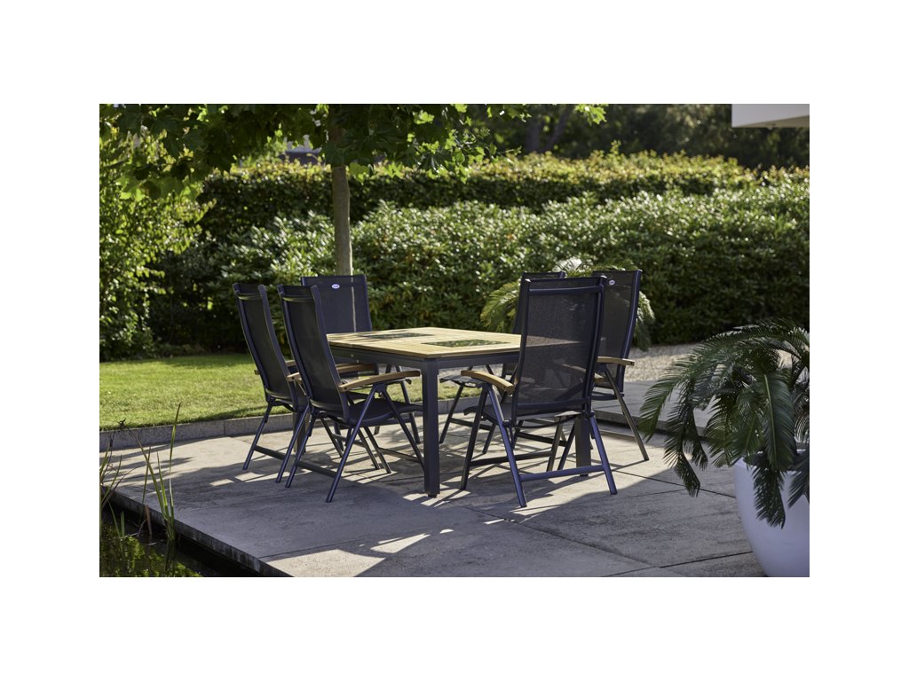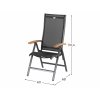 Zahradní polohovací křeslo z kolekce Hartman je vyrobeno z hliníku v barevné úpravě - xerix a teakových područek. Židle je ergonomicky vytvarována a veškeré spoje sloužící pro polohování jsou v kombinaci kov + teflon. Do kostry křesla je vypnuta silná umělá textilie, barevně vkusně sladěná s barvou kostry křesla.