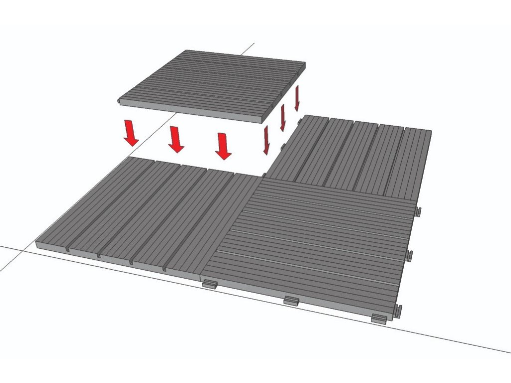 Dlažba se upevňuje pomocí bočních spojovacích háčků, tzv. systémem Quick - Click.