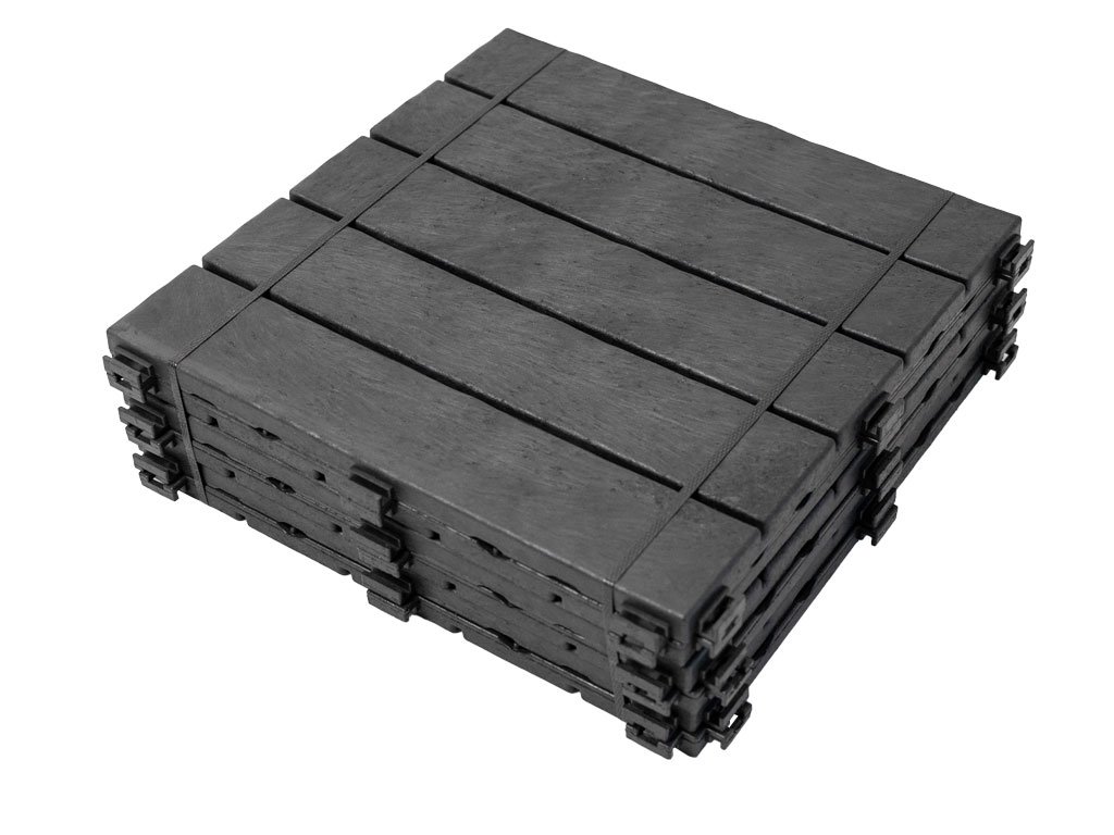 Gumová dlaždice 30 x 30 cm, výška 1,5 cm, v antracitové barvě. Směs gumové pryže a polypropylenu s dlouhou životností a vysokou odolností. Velmi snadná montáž.