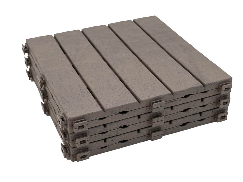 Použitý materiál zaručuje vysokou odolnost a dlouhou životnost. Díky systému Quick-Click je pak položení dlažby rychlé a snadné.