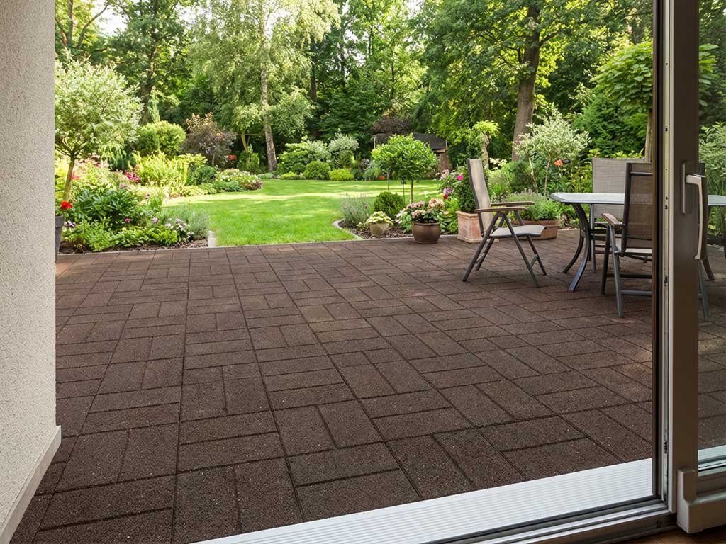 Gumová terasová dlaždice Extreme Cosmopolitan v elegantním designu, v hnědé barvě....